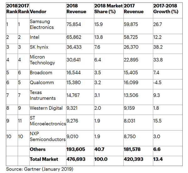 2018年の半導体企業ランキング